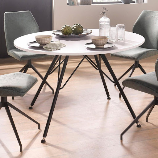 OTTO products Esstisch Lennard aus massiver gelter Wildeiche mit veganem und zertifizierten Bio-l behandelt runde Tischplatte sternfrmigem Metallgestell schwarz Esstische rund oval Tische. Der runde Kchentisch individuell und auf Ma von COMNATA Esstisch. Ein Kchentisch ist normalerweise kleiner qua ein Esstisch da er in eine Wohnkche passen muss.